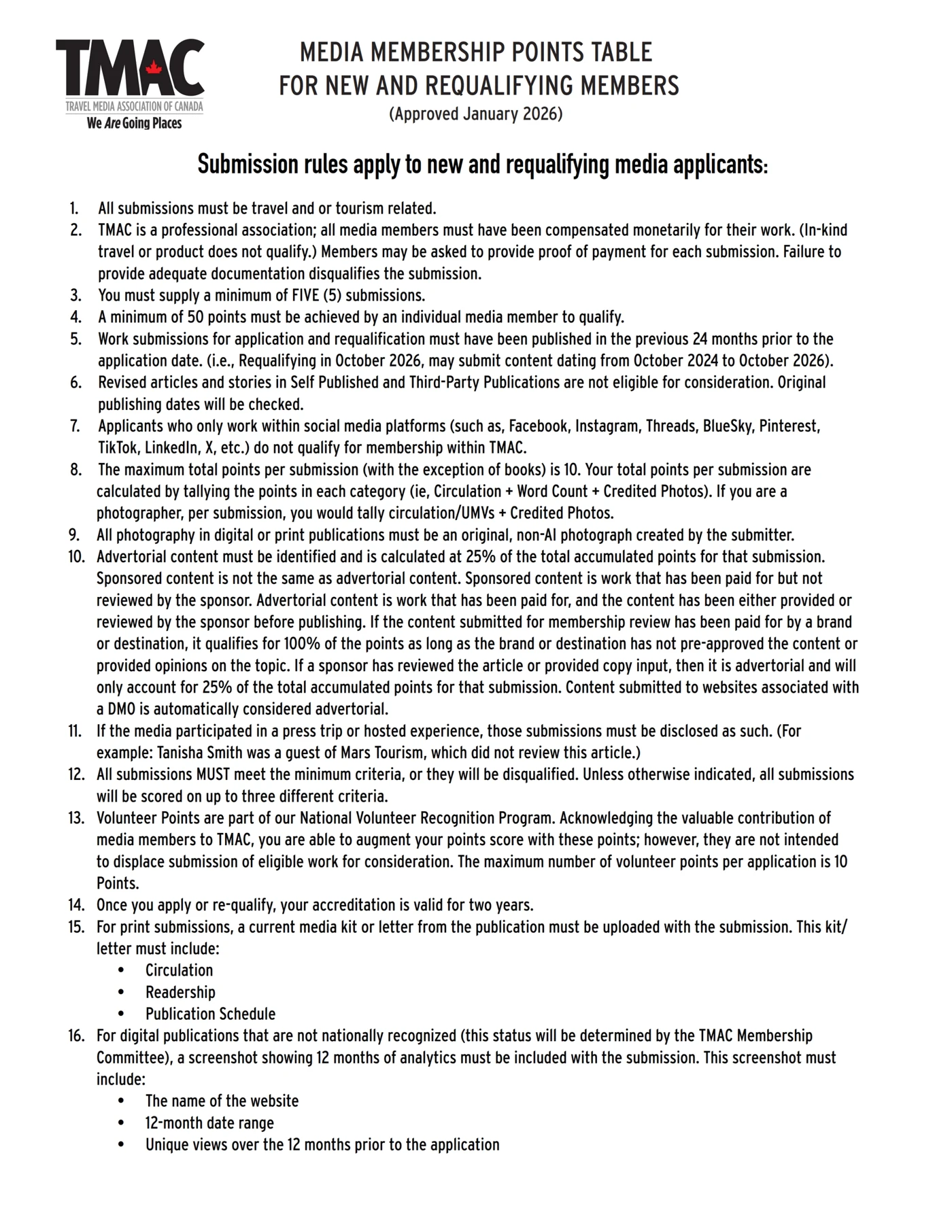 A new TMAC Points Table and Form will be launching on March 1, 2026.