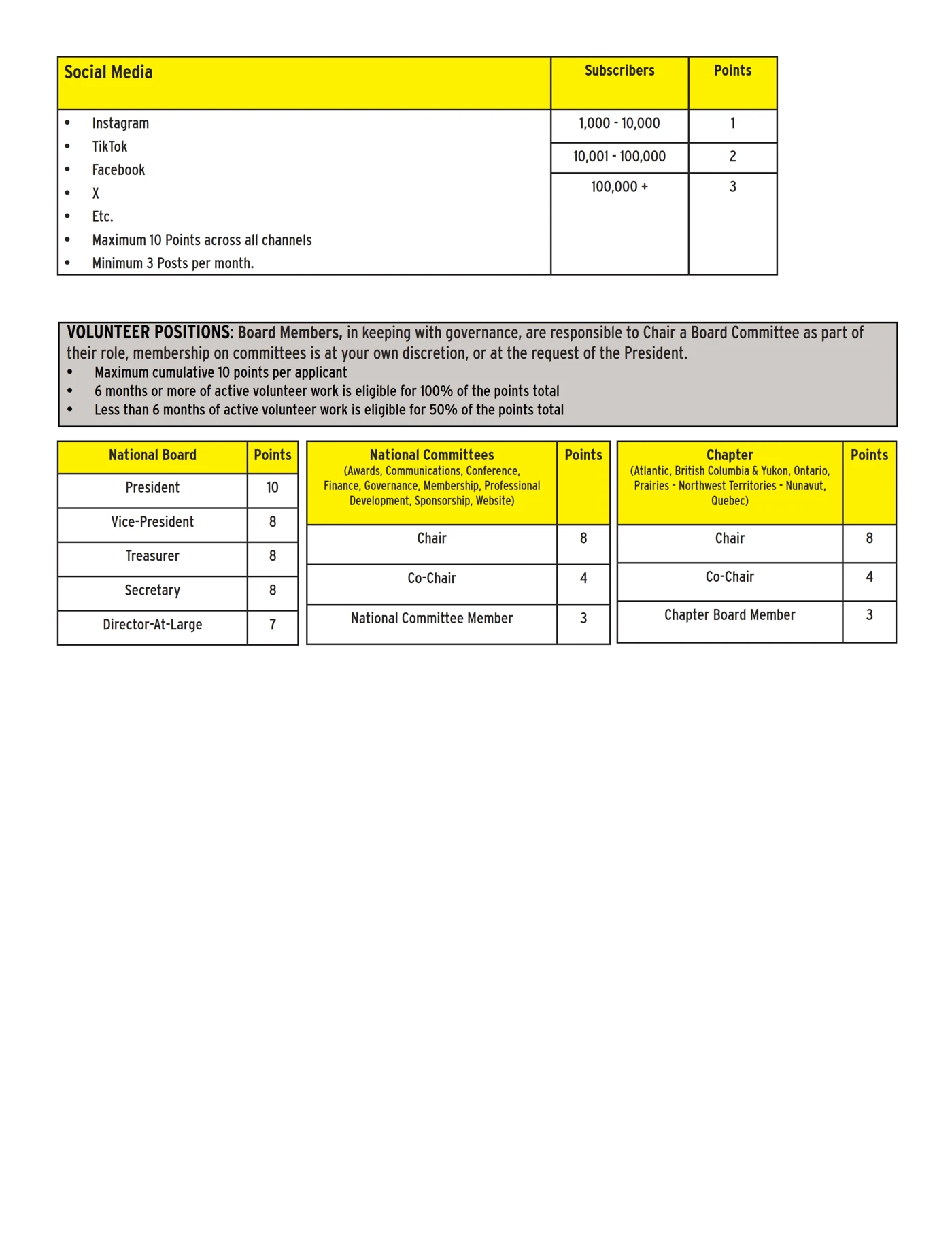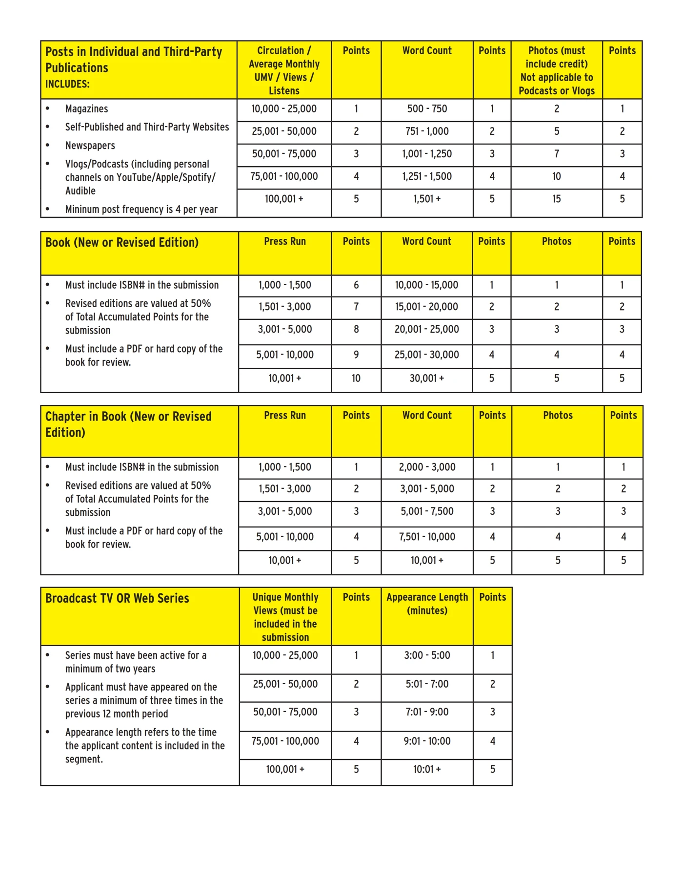 Media Membership Points Table
